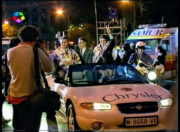 Acompañados por más de 500.000 personas, el día siguiente, el 21 de mayo, arrancaba en Madrid una de las celebraciones más esperadas por los madridistas: la comitiva encabezada – desde Barajas hasta la Plaza de Cibeles – por el Chrysler que llevaba a Lorenzo Sanz, el entonces presidente, con el entrenador, Jupp Heynckes y el capitán, Manolo Sanchís con la copa para dedicársela a la diosa y a la afición.